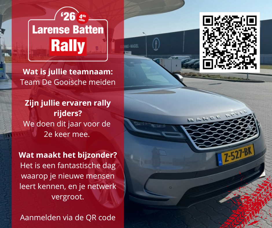 Op 23 mei 2026 zien wij een bekend team aan de start van de 4de editie van de Larense Batten Rally; Team De Gooische Meiden, gevormd door het enthousiaste duo Lisa de Gunst & Manon Broersma. Voor Lisa wordt dit haar 2de deelname, terwijl Manon voor het eerst deel uitmaakt van dit bijzondere evenement.